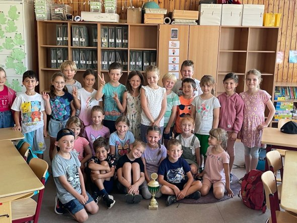 Die Klasse 1a erkämpfte sich letztendlich als glückliche Gewinner den Siegerpokal.