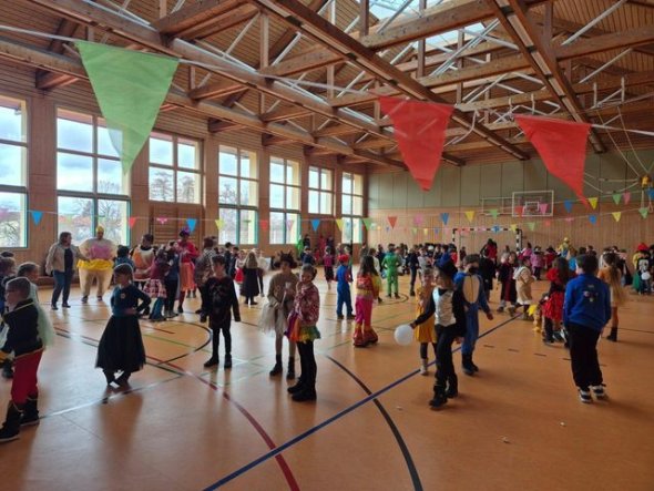 Nach einer ordentlichen Stärkung und einer Polonaise durchs Schulhaus sind wir nach der Pause in die Turnhalle. Dort durften wir Tänze, Gesang, eine Büttenrede und eine Zaubershow erleben.