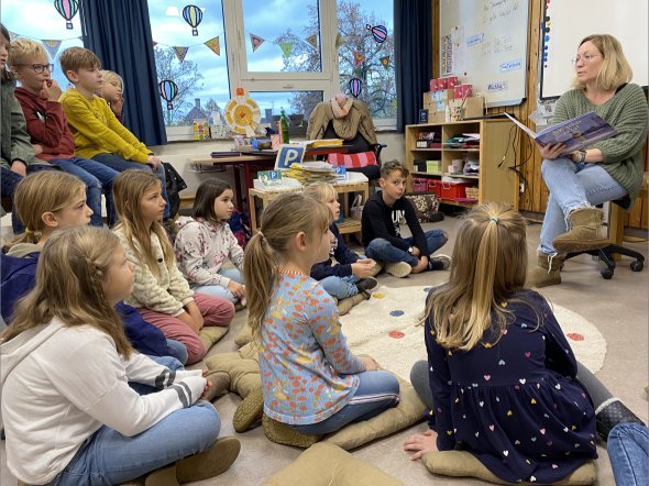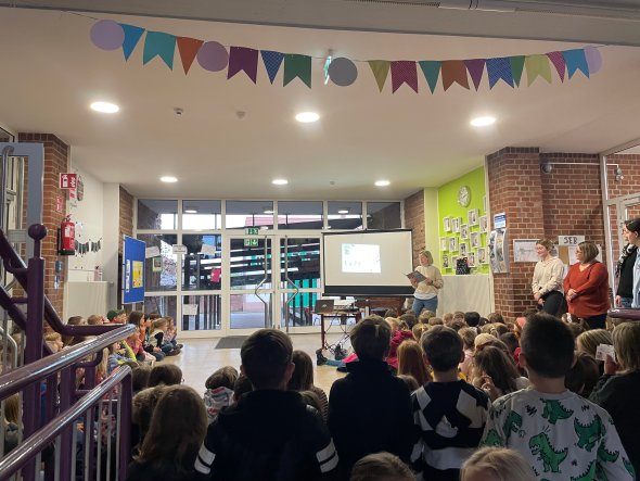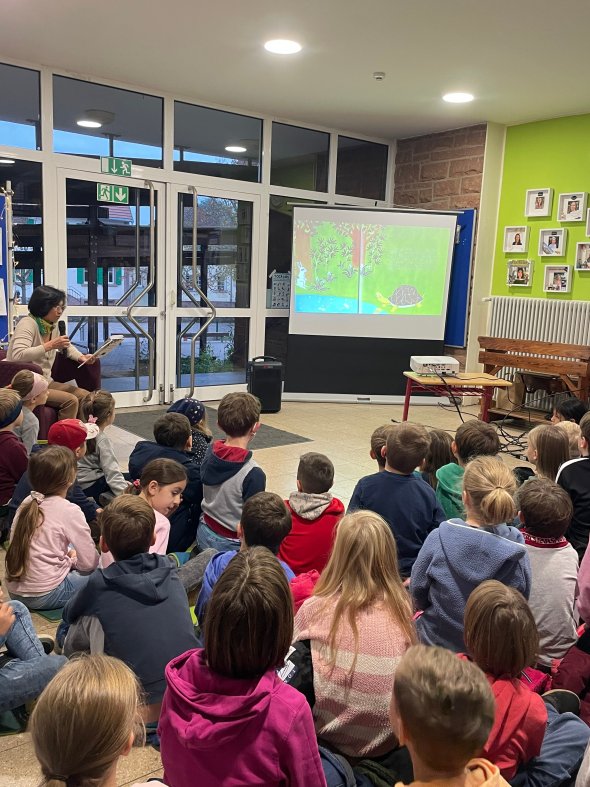 Auch wir waren wie jedes Jahr beim bundesweiten Vorlesetag dabei. Das diesjährige Motto: "Vorlesen schafft Zukunft". Nach einer gemeinsamen Begrüßung im Foyer, durften die Kinder der Kinderbuchautorin Jiraporn Lutz, die im Foyer ihr Buch "Die Schildkröte Jonathan" präsentierte, lauschen.