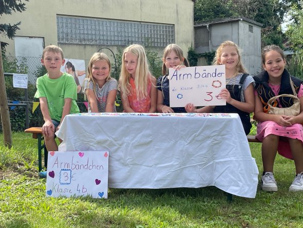 Die Kinder der Klasse 4 b der Edesheimer Grundschule waren aktiv. Zusammen mit ihren Klassenlehrerinnen Frau Gentner und Frau Ritter haben sie schon vor den Ferien Armbändchen hergestellt, die sie am Kerwesonntag auf dem Spielefest verkauft haben. Mit bunten Perlen, Namen und besonderen Accessoires haben die Schüler kreative Armbändchen entworfen um diese zu verkaufen. Den Erlös nutzen die Schüler für ihre anstehende Klassenfahrt.