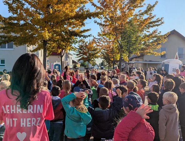 Am Mittwoch, den 11.06.2025 war unser langersehnter Spatenstich. Gemeinsam mit unseren 182 Kindern haben wir mit dem Schullied die Feier eröffnet.