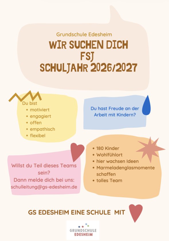 Die Grundschule Edesheim sucht ab Sommer 2024 wieder eine:n Freiwillige:n!