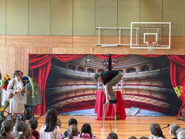 Opernretter mit ihrem Stück "Aida und der Zaubertrank" bei uns an der Grundschule zu Gast.