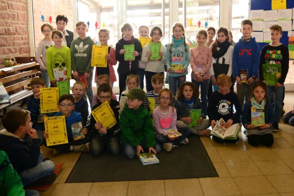 Seit vielen Jahren haben wir uns dem Thema Lesen verschrieben. Die Lesefertigkeit entwickeln, zum Lesen ermuntern, Freude am Lesen wecken, dies sind ganzjährige Schwerpunkte. Die Teilnahme am Deutschen Vorlesetag im November hat an unserer Schule lange Tradition. Neben Persönlichkeiten aus der Politik, Eltern, ehemalige Kolleg*innen haben auch schon aktive Handballer der Eulen, Turner:innen… den Schüler:innen vorgelesen. Fest verankert im Stundenplan sind die Lesepatenschaften mit den Patenklassen sowie der monatliche Besuch der kath. Gemeindebücherei in unmittelbarer Nähe der Schule. Schulprojekttage rund ums Buch runden das Thema ab.